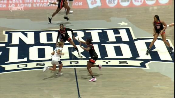 North Florida's Alonya Waldon banks in a half-court winner