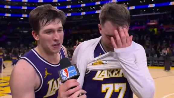 Austin Reaves crashes Luka Doncic's postgame interview to poke fun at how many more dunks he has than Luka.
